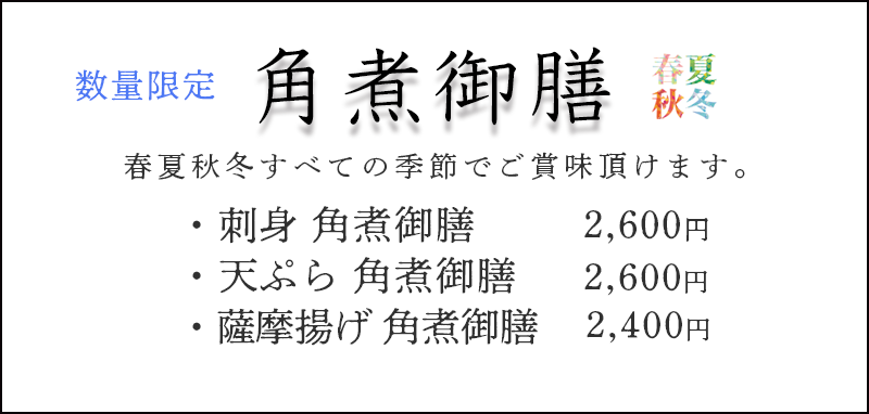 地元の「旬」の素材にこだわり、その日の仕入れ状況などで、お出しできるお料理が「季節」により変わります。ご了承を頂けますようお願いいたします。内容やご予算につきましては事前にご相談承ります。